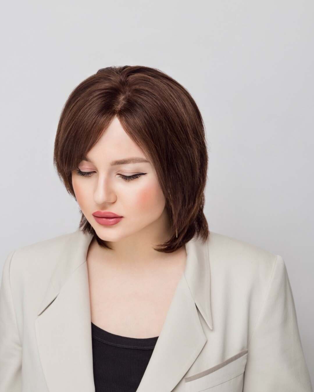 : моновставка на теменной зоне, можно зачесывать пробор на любую сторону.