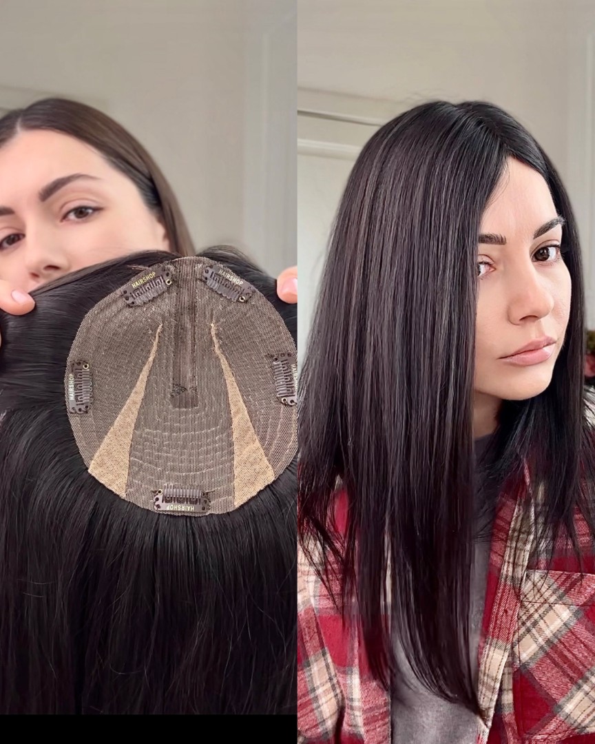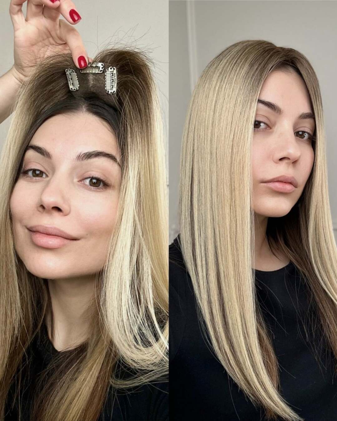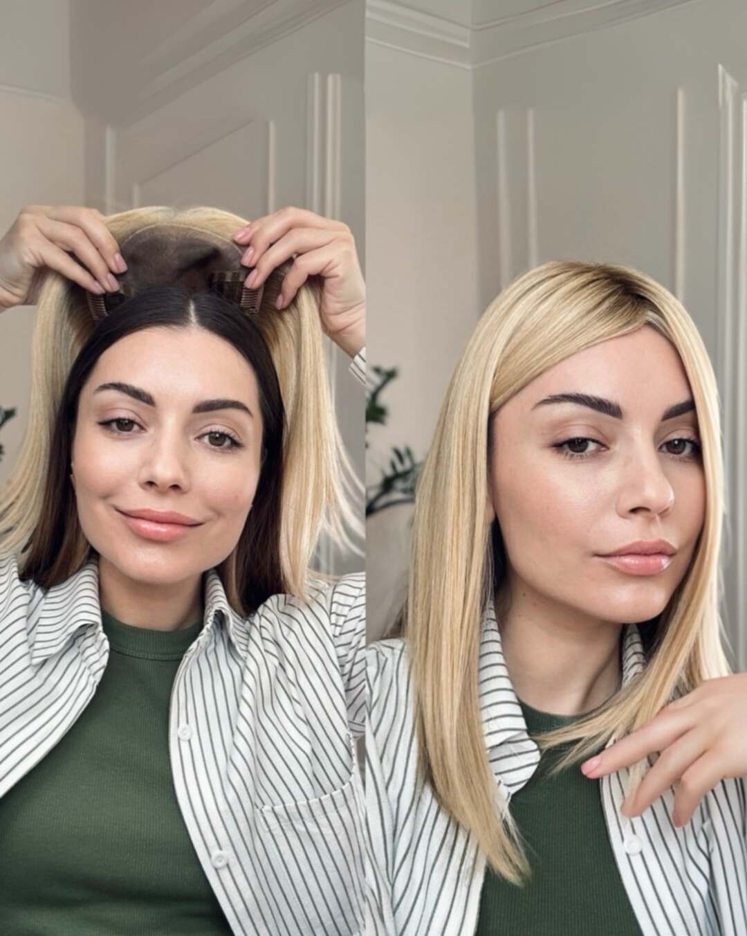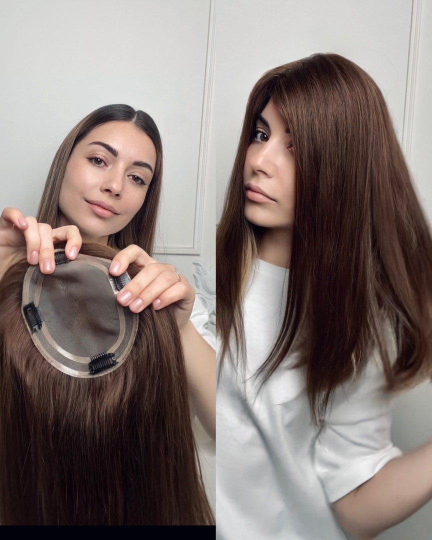 Натуральные накладки выглядят максимально естественно и полностью сливаются с вашей прической. Это универсальный вариант для тех, кто хочет, что бы изделие вело себя как собственные волосы.