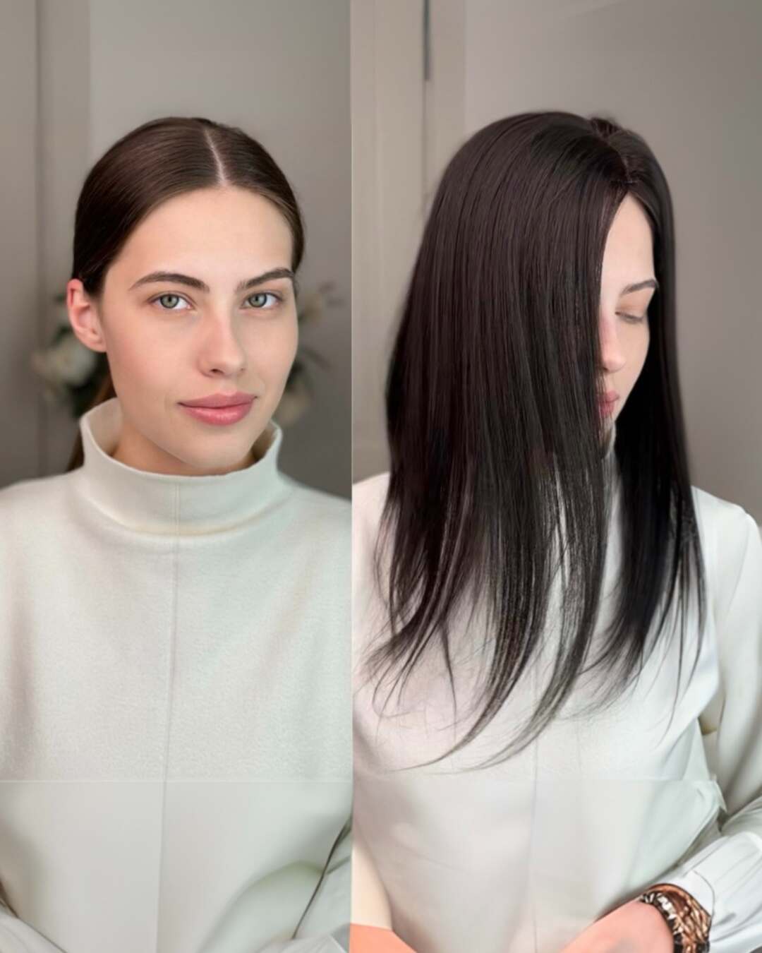 Наши мастера работают с натуральными изделиями: при необходимости их можно подстричь, уложить или окрасить для естественного и гармоничного результата.