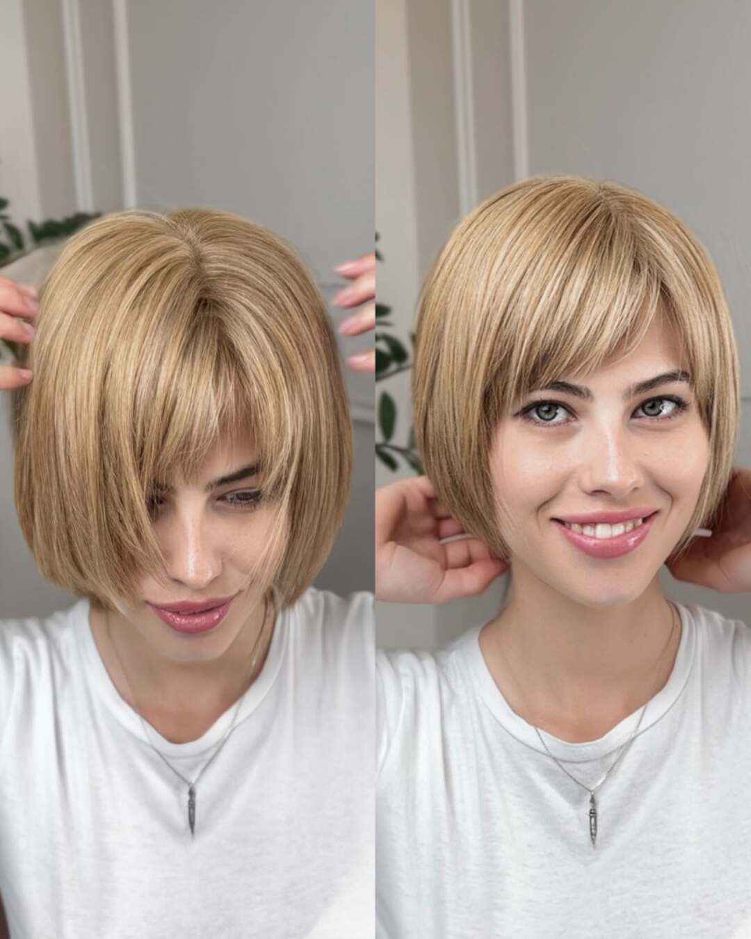 - Изменить или передвинуть пробор (если конструкция основы это позволяет).