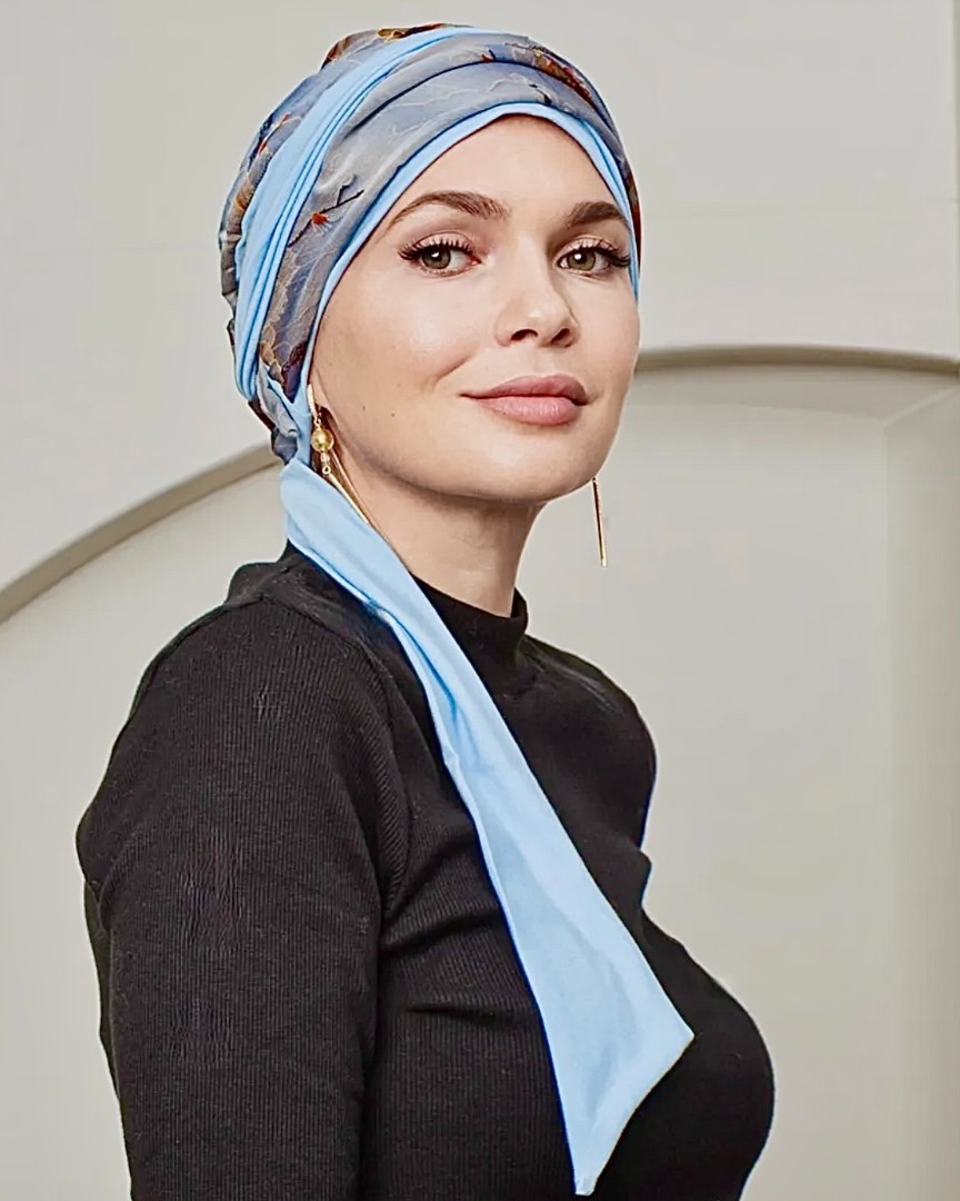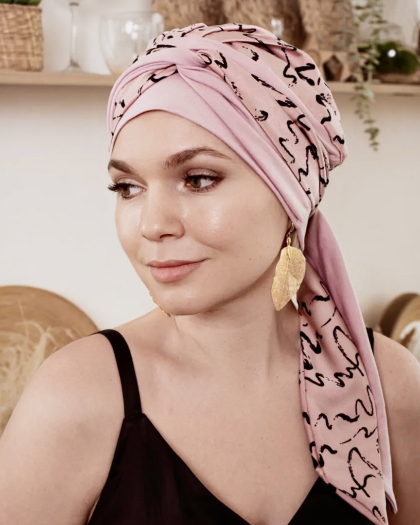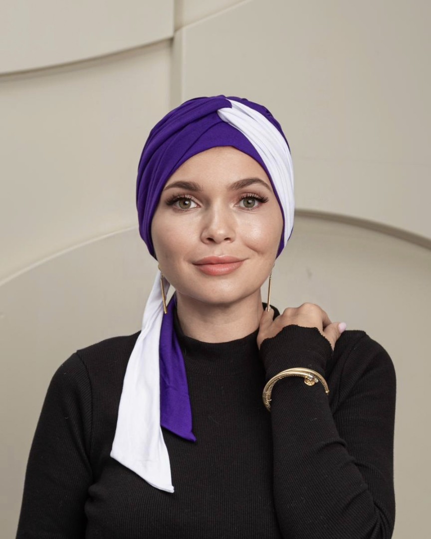 Тюрбан состоит из мягкой комфортной шапочки и двух лент, которые легко оборачиваются вокруг головы.
