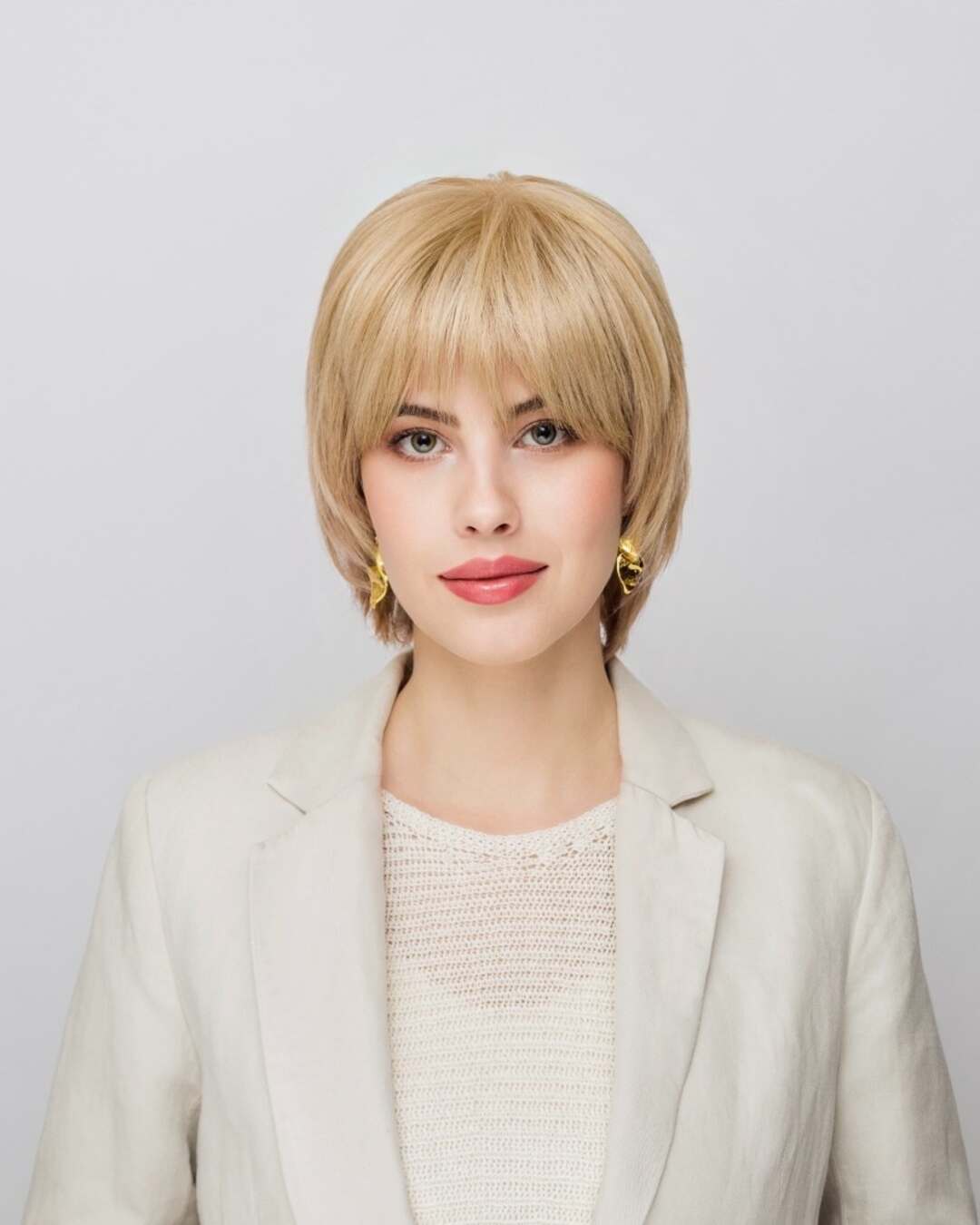 : моновставка на теменной зоне, можно зачесывать пробор на любую сторону.
