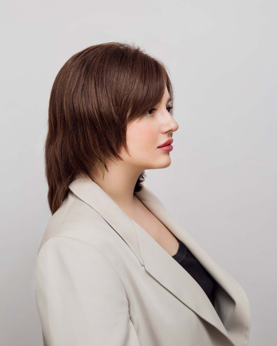 : моновставка на теменной зоне, можно зачесывать пробор на любую сторону.