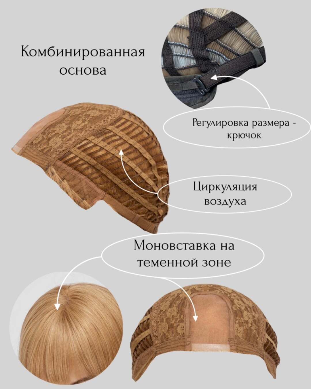 Особенности: сетка по линии пробора.