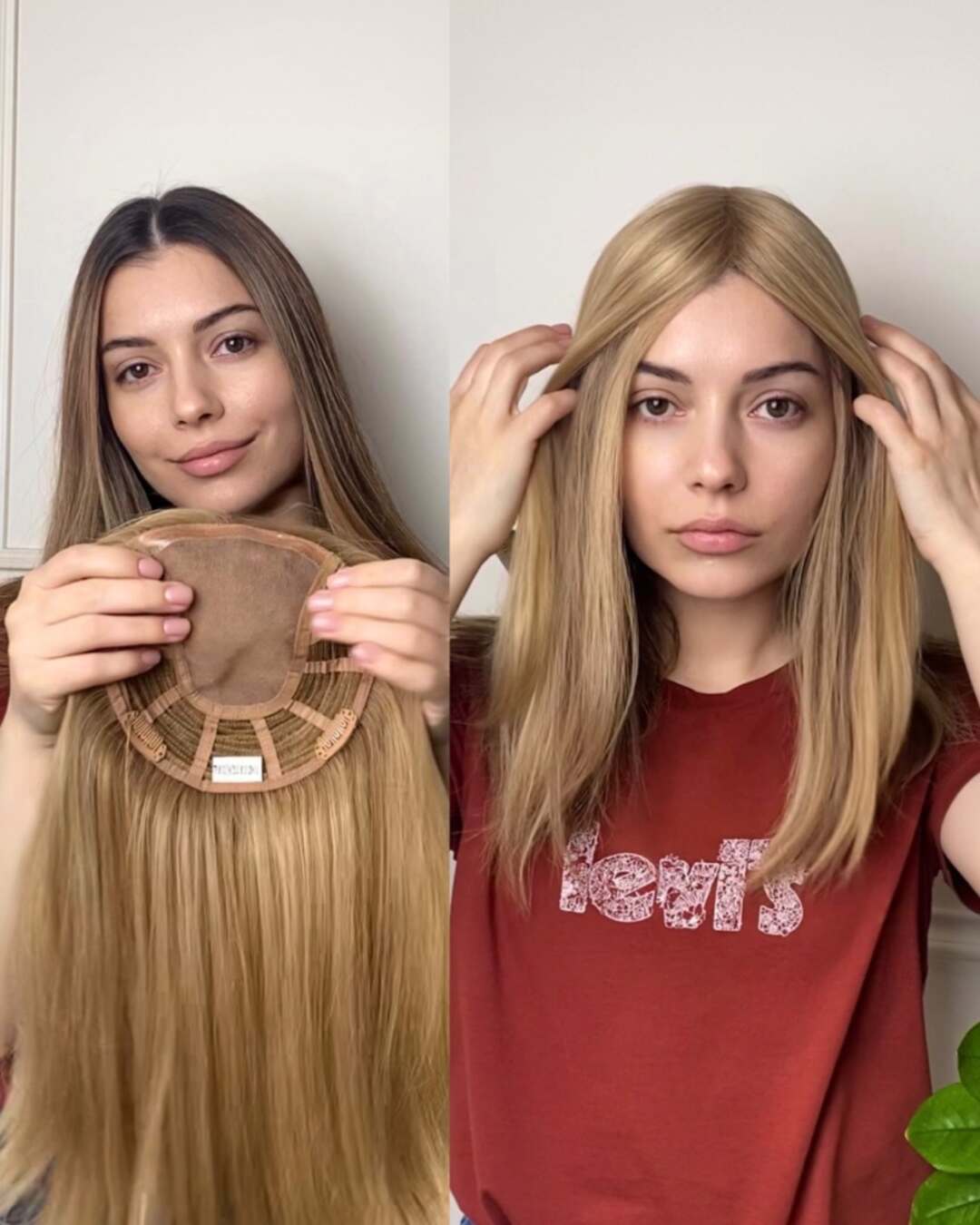 Натуральные накладки выглядят максимально естественно и полностью сливаются с вашей прической. Это универсальный вариант для тех, кто хочет, что бы изделие вело себя как собственные волосы.